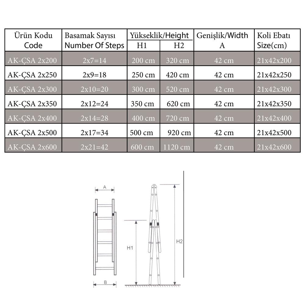 Çift Sürgülü Tasarım: Her iki parça da ayrı ayrı uzatılabildiğinden, merdivenin uzunluğunu ihtiyaca göre ayarlayabilirsiniz.