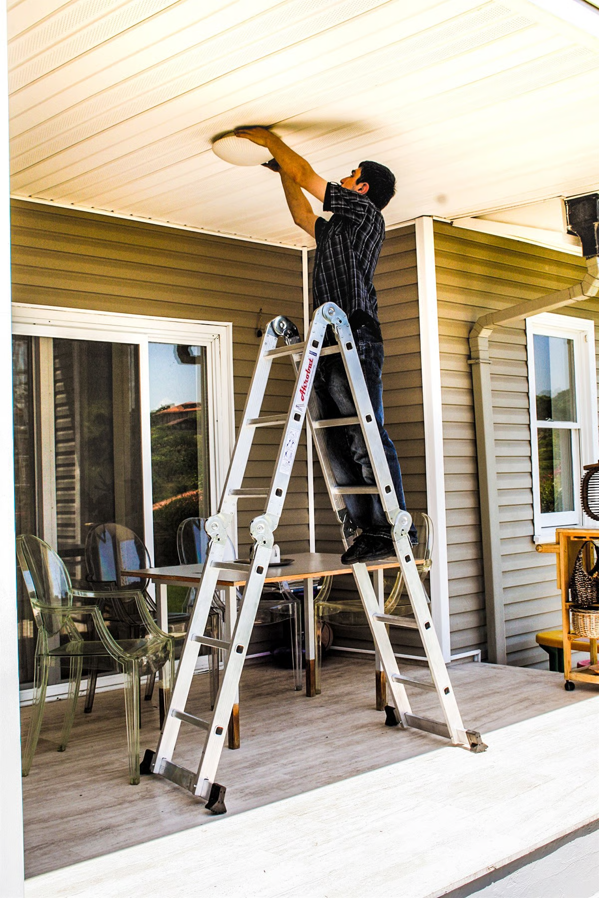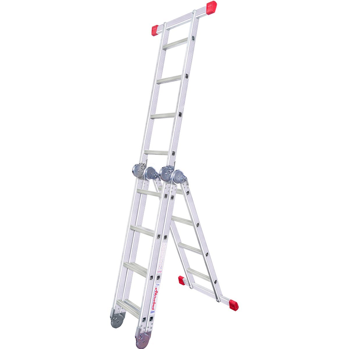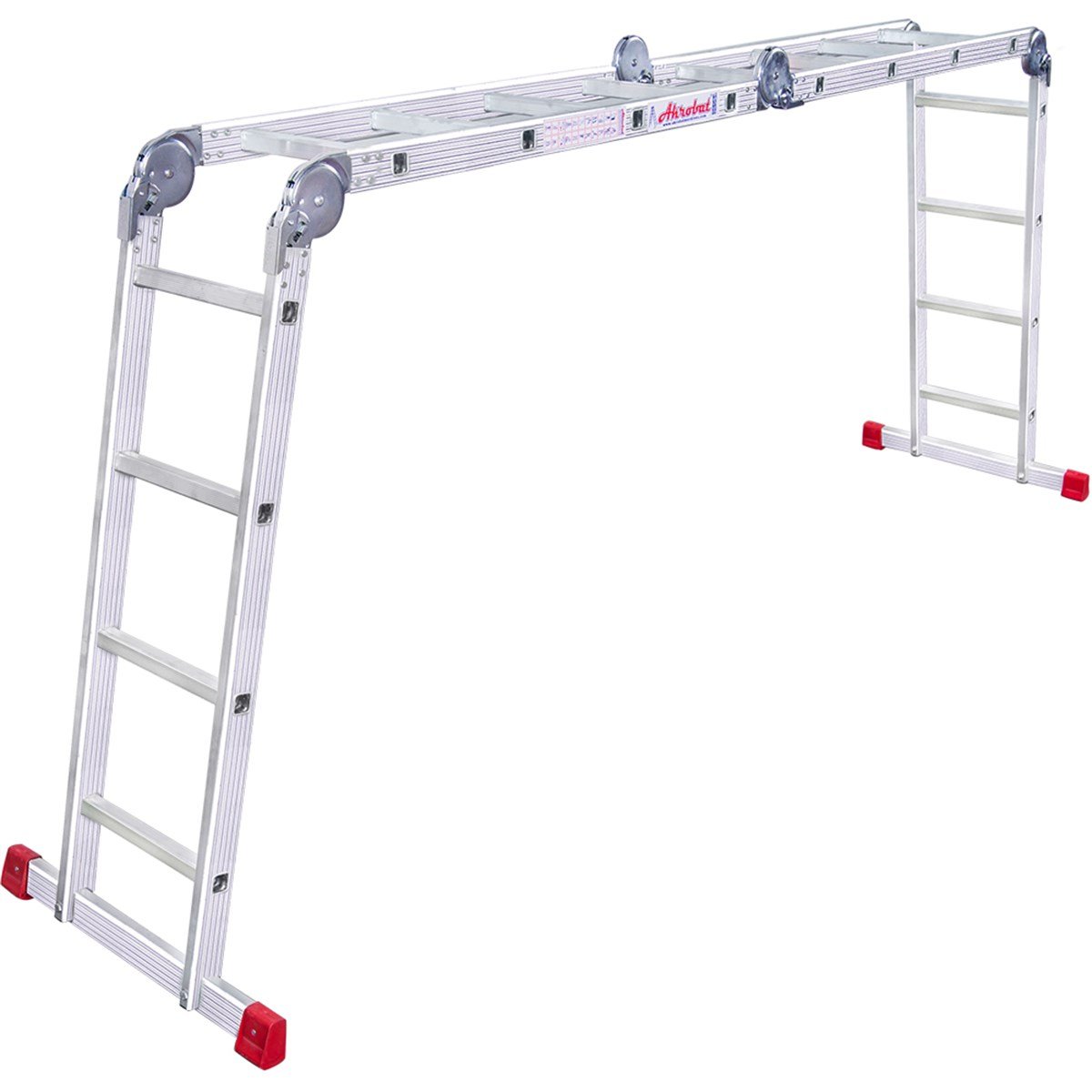 A tipi konumunda herhangi bir yere dayamaya gerek duyulmadan kullanabilindikleri gibi, tek parça dayamalı olarak da Akrobat Merdivenleri kullanabilirsiniz. Aynı zamanda kolaylıkla platform şekline de gelebilirler.