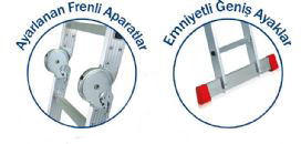 İç ve dış mekanlarda kullanımlar için çok idealdirler, alüminyum olmaları nedeniyle hafiftir ve taşınması kolaydır. Sert alüminyumdan oluşan basamaklar ve taşıyıcı profiller ile kaymayı önleyici kauçuk ayaklar sağlamlığı ve güvenliği arttırır.