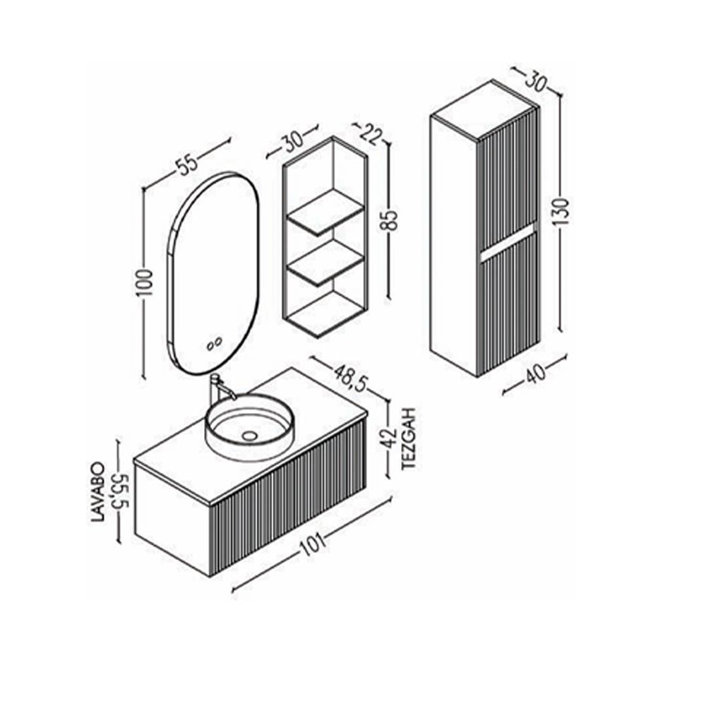 Kompakt ve Kullanışlı: 100 cm genişliği ile orta ve büyük banyolar için ideal bir kullanım alanı sunar.