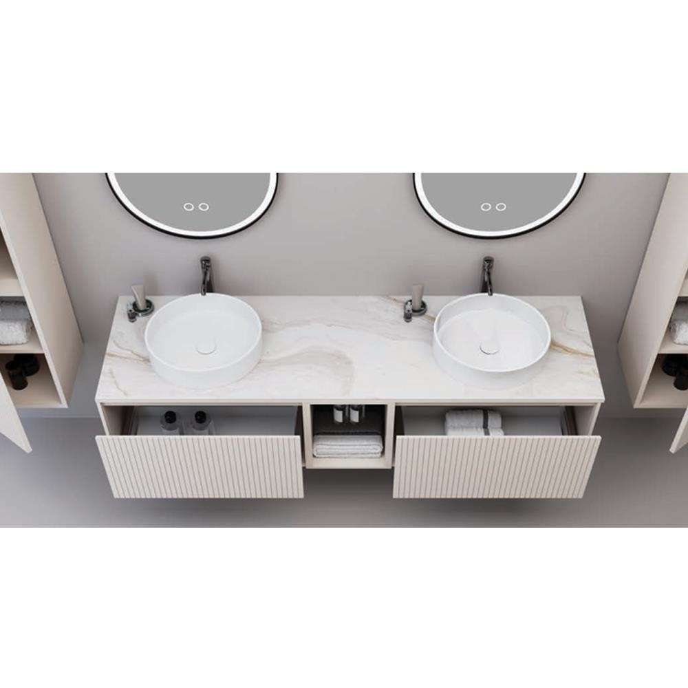 sunan krem rengi dolap, modern ve şık bir atmosfer yaratırken banyo düzeninizi korumanıza yardımcı olur.