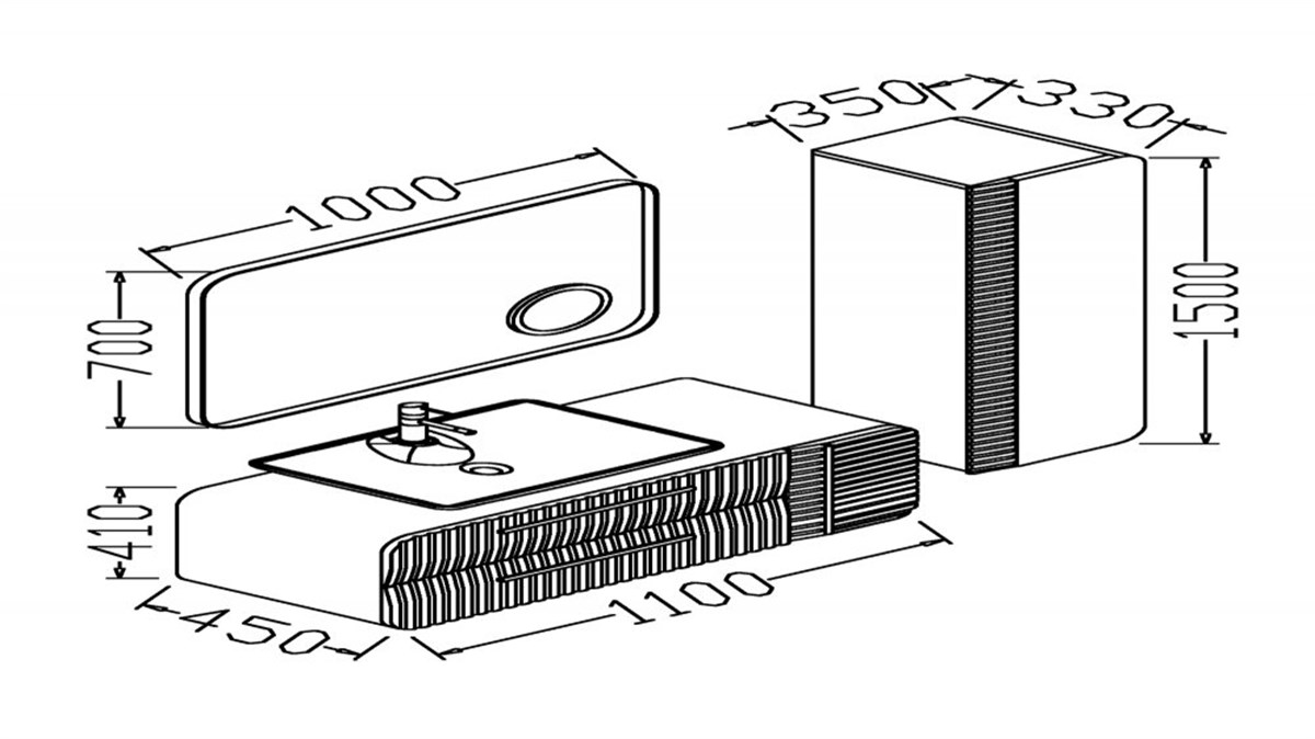 Alt modül: En 110 cm Derinlik 45 cm Yükseklik 41 cm ( İki çekmeceli, bir kapaklı)