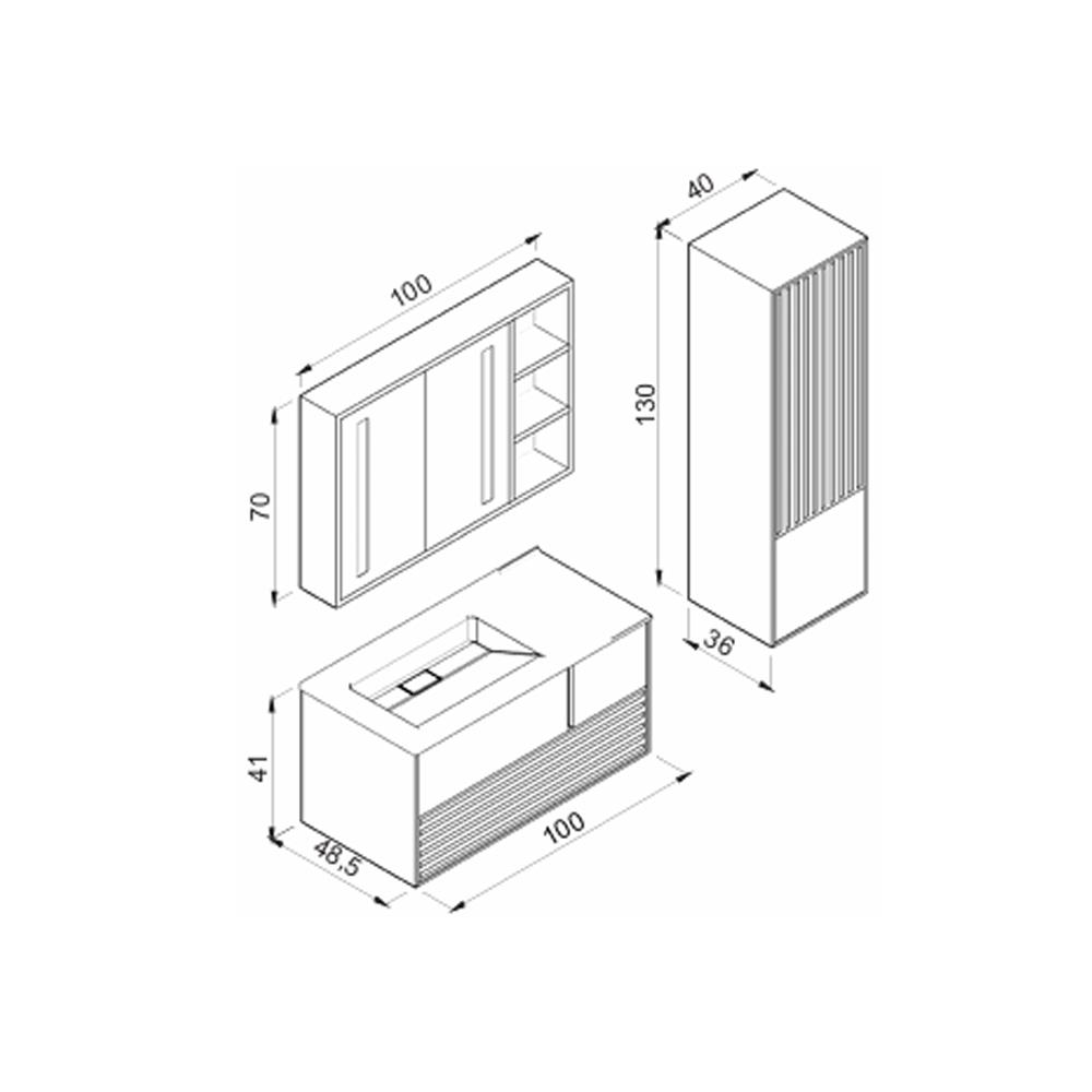 Kompakt ve Fonksiyonel: 100 cm genişliği ile orta büyüklükteki banyolar için mükemmel uyum sağlar.