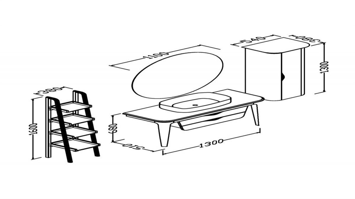 Alt modül: En 130 cm Derinlik 51 cm Yükseklik 68 cm ( İki çekmeceli)