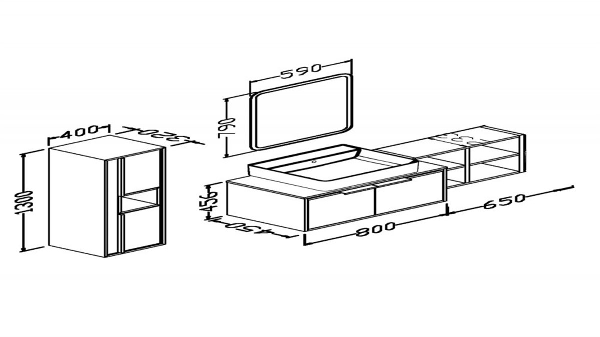Aquanil Camaro 145 Cm Siyah Lavabolu Banyo Dolabı - Dorado