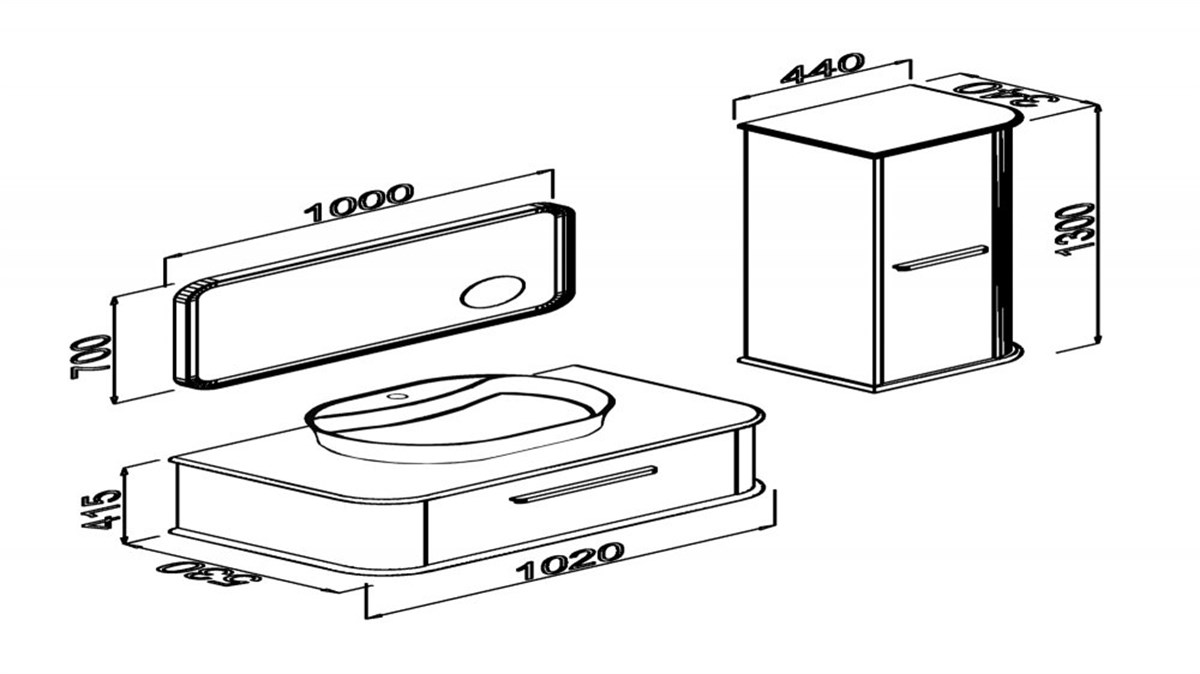 Üst ayna modül: En 100 cm Yükseklik 70 cm