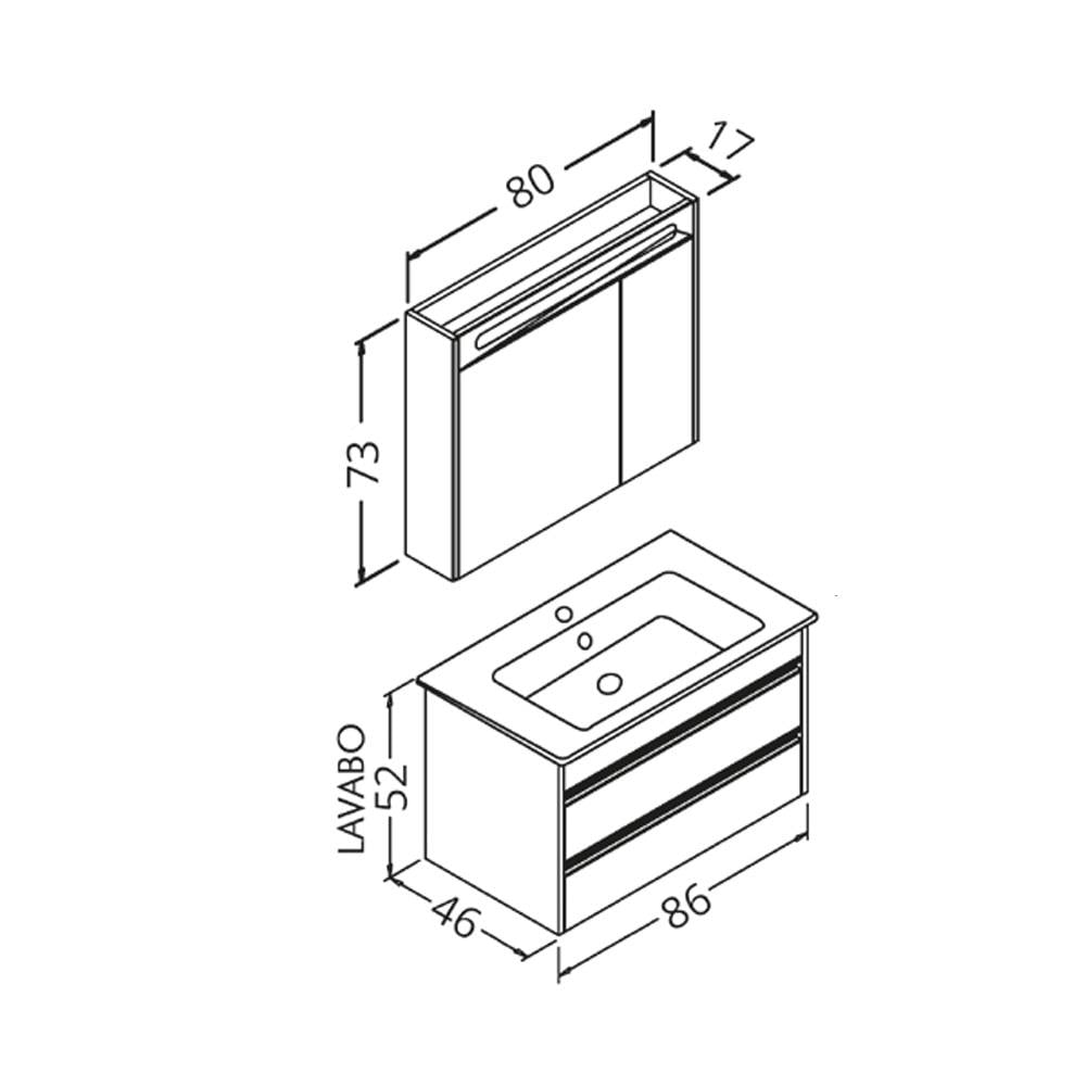 Aquanil Levante 85 Cm Npl Siyah Lavabolu Banyo Dolabı - Beyaz