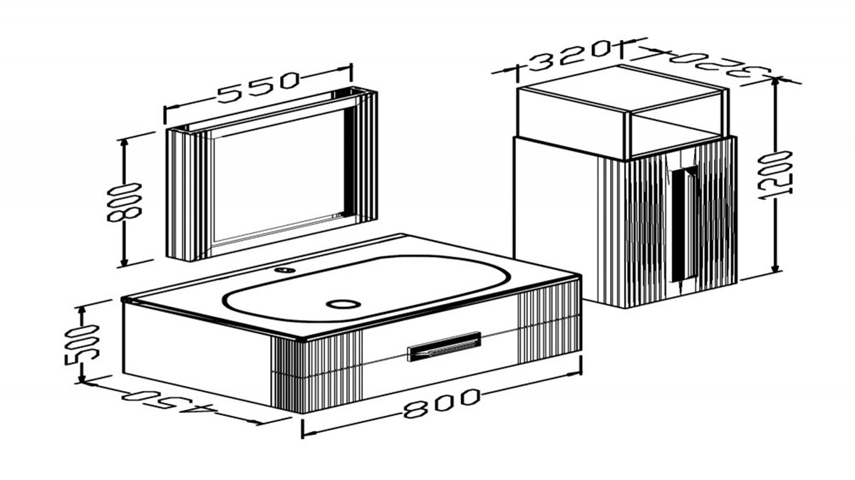 Üst ayna modül: En 55 cm Yükseklik 80 cm