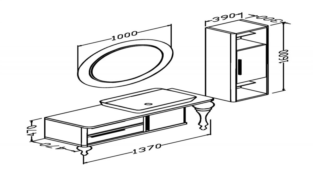 Alt modül: En 140 cm Derinlik 47 cm Yükseklik 74 cm ( İki çekmece, bir kapak )