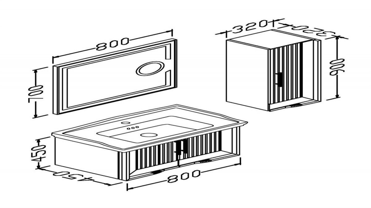 Üst ayna modül: En 80 cm Yükseklik 70 cm