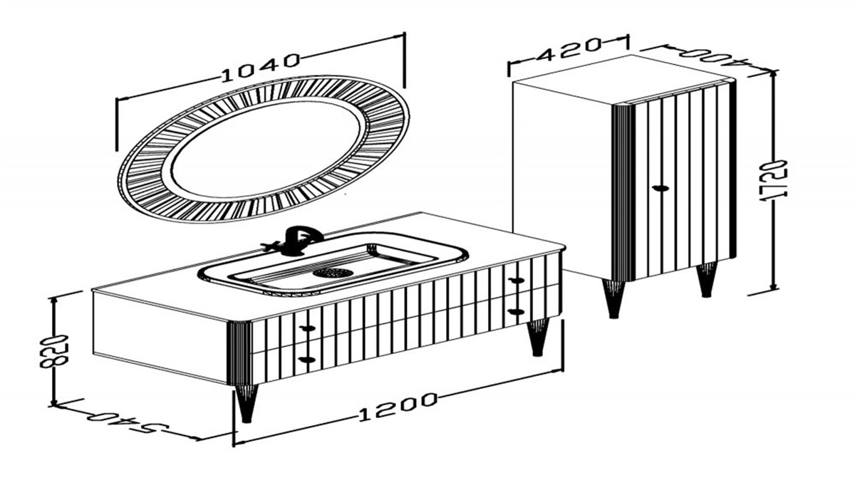 Aquanil Solaris 120 Cm Ayaklı Siyah Lavabolu Banyo Dolabı - Beyaz
