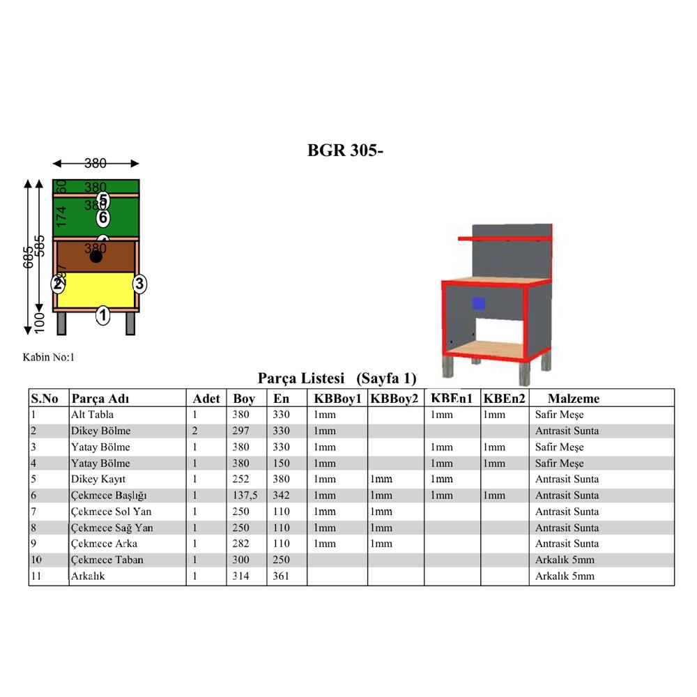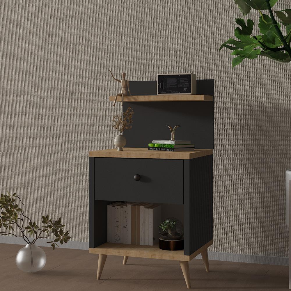 Bgr 305-A Çekmeceli Komodin Antrasit/Meşe