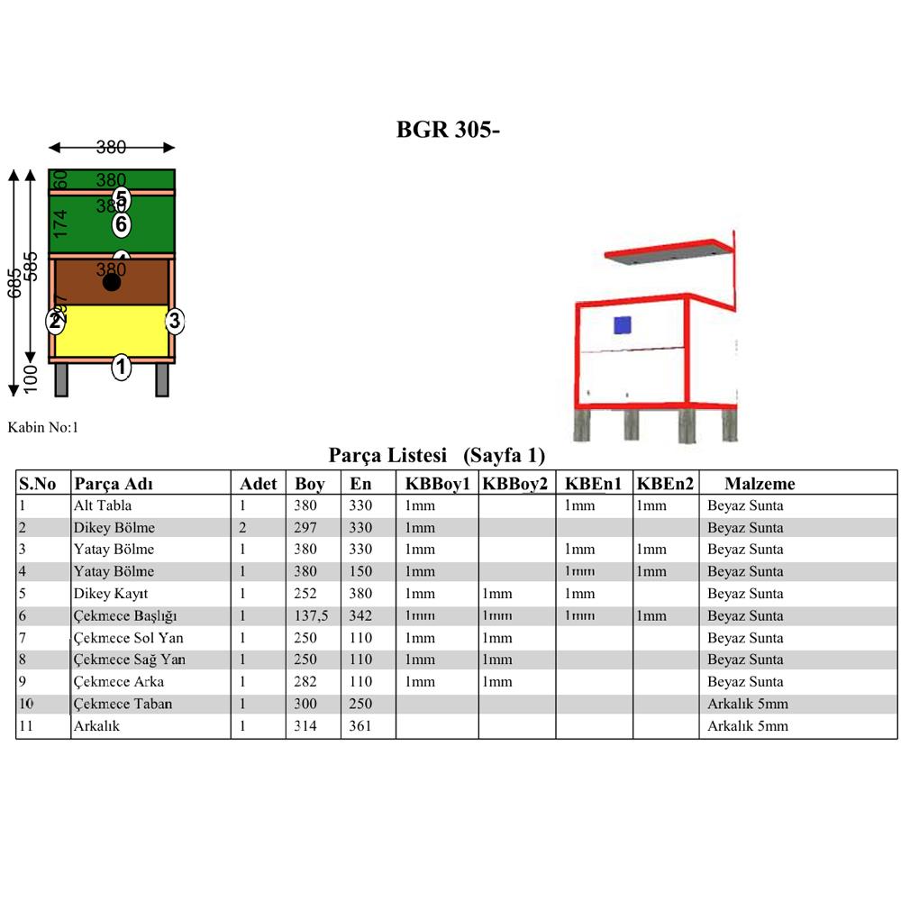Bgr 305-C Çekmeceli Komodin Beyaz