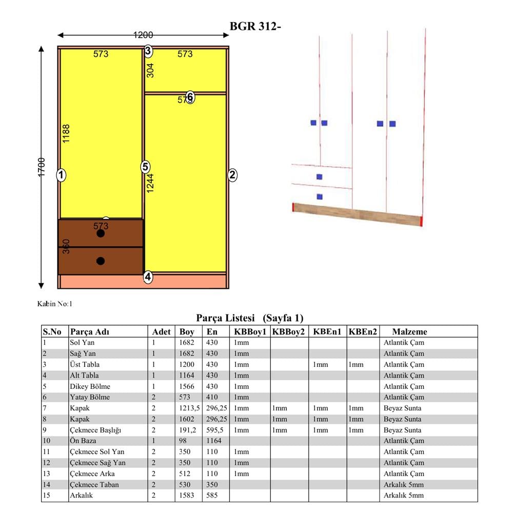 Malzeme: Yıldız Entegre 18 mm yonga levha
