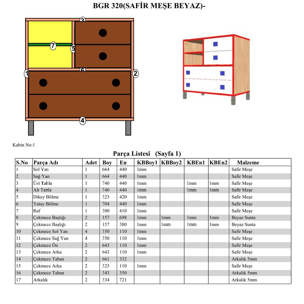 Bgr 320 4 Çekmeceli Raflı Şifonyer Beyaz-Meşe