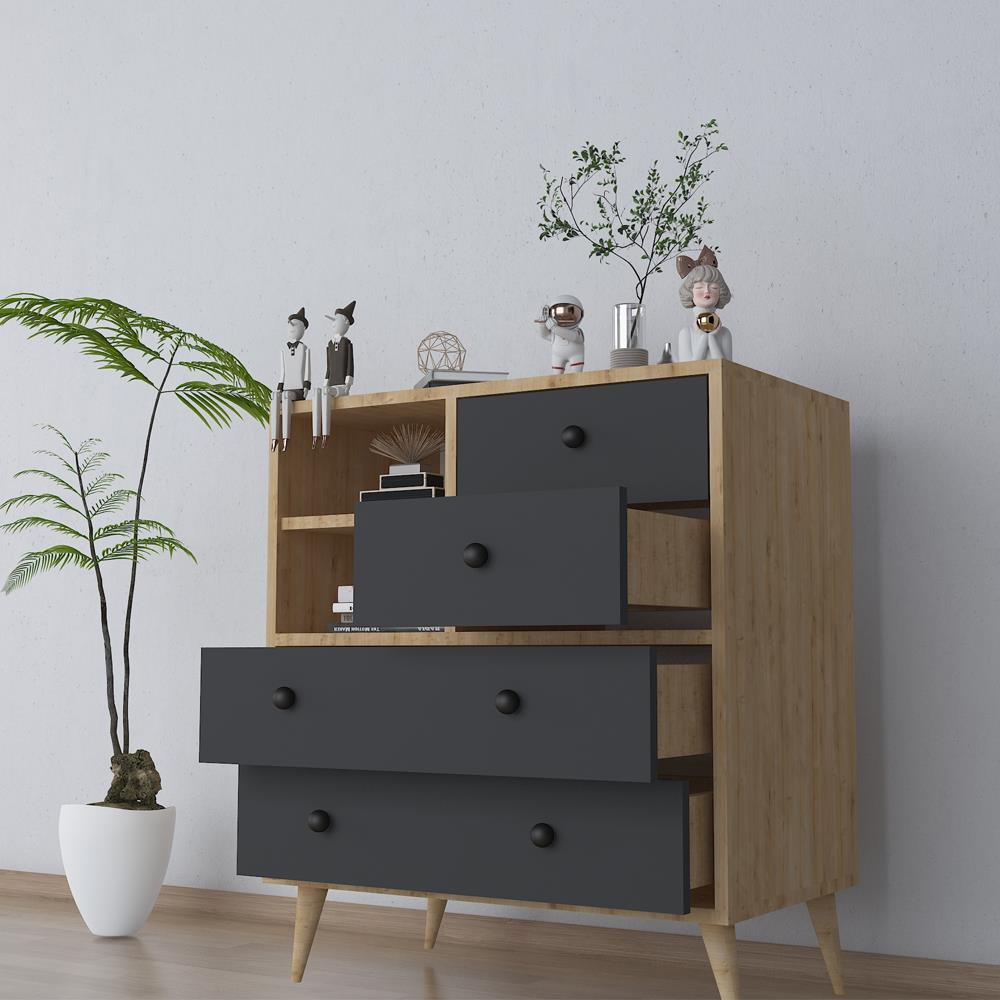 Bgr 320-A 4 Çekmeceli Raflı Şifonyer Antrasit/Meşe