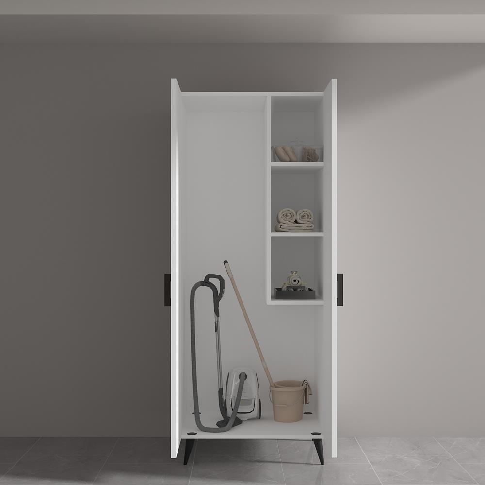 Temizlik malzemeleri ve ev ihtiyaçlarınızı düzenli bir şekilde saklamak için ideal bir çözüm sunan Çift Kapaklı Temizlik Dolabı, sade tasarımı ve fonksiyonel yapısıyla her türlü