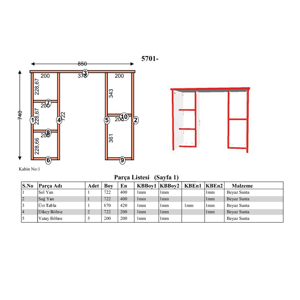 Malzeme: 18 mm kalınlığında yonga kaplı levha, Yıldız Entegre markasının kaliteli malzemesiyle üretilmiştir.