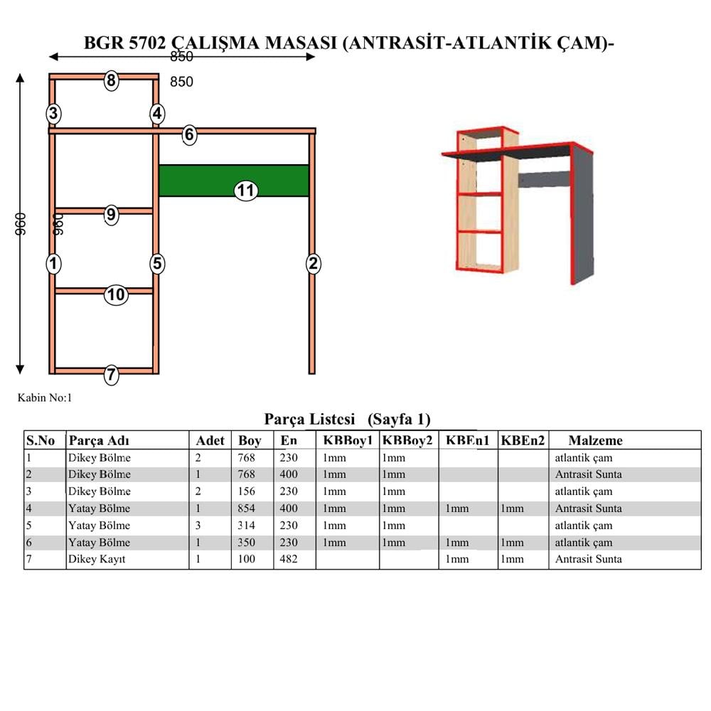 Çam/Antrasit renk kombinasyonu ile her tür dekorasyon tarzına uyum sağlar. Gerek ev kullanıcıları gerekse öğrenciler ve home ofis çalışanları için tasarlanmış olan bu çok amaçlı