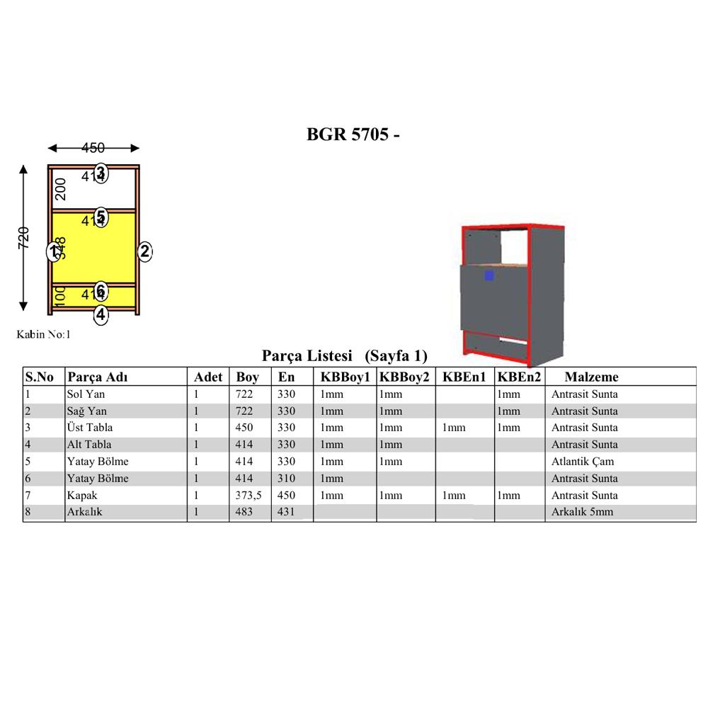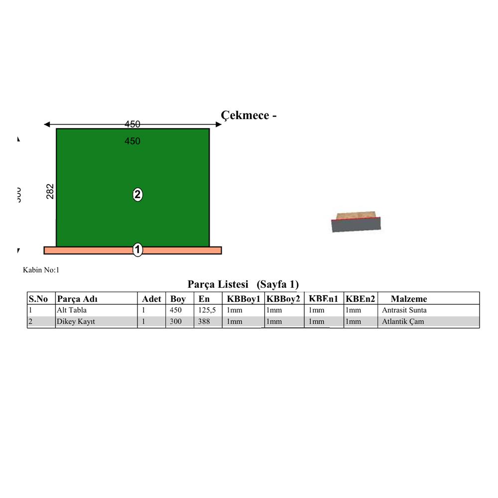 Malzeme: 18 mm kalınlığında, dayanıklı Yıldız Entegre yonga kaplı levha.
