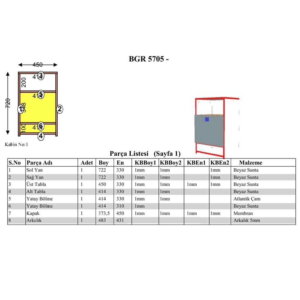 Malzeme: Yıldız Entegre markalı 18 mm yonga kaplı levha ile üretilmiştir.