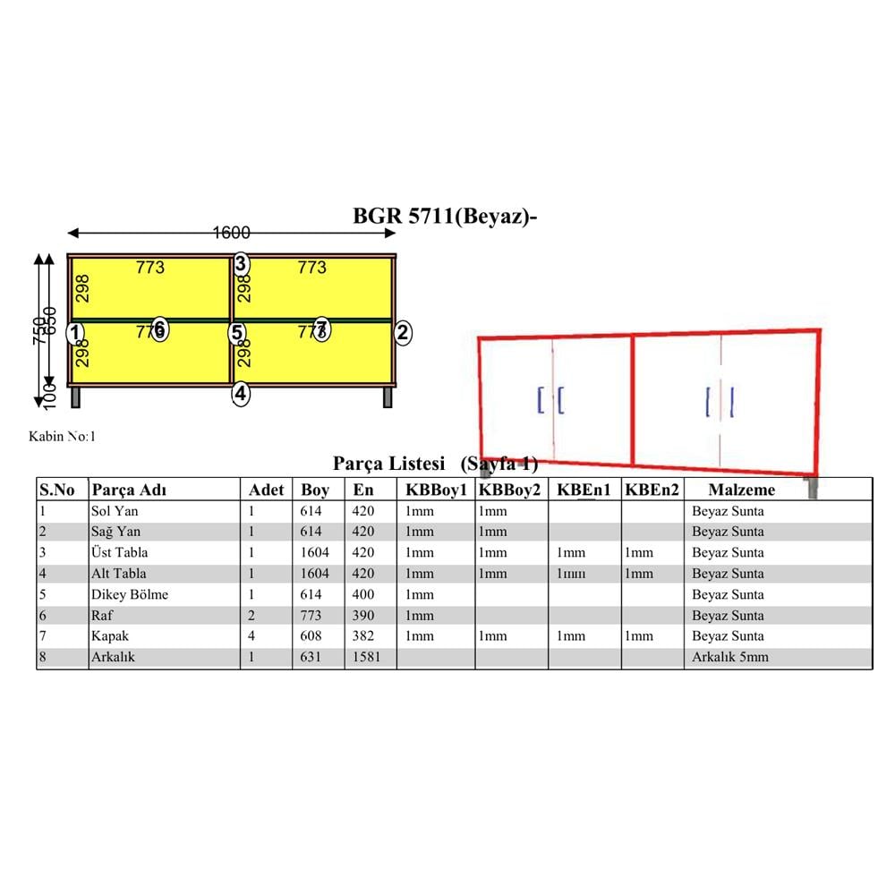 Malzeme: 18 mm kalınlığında yonga kaplı levha, Yıldız Entegre markasının kaliteli üretiminden elde edilmiştir.