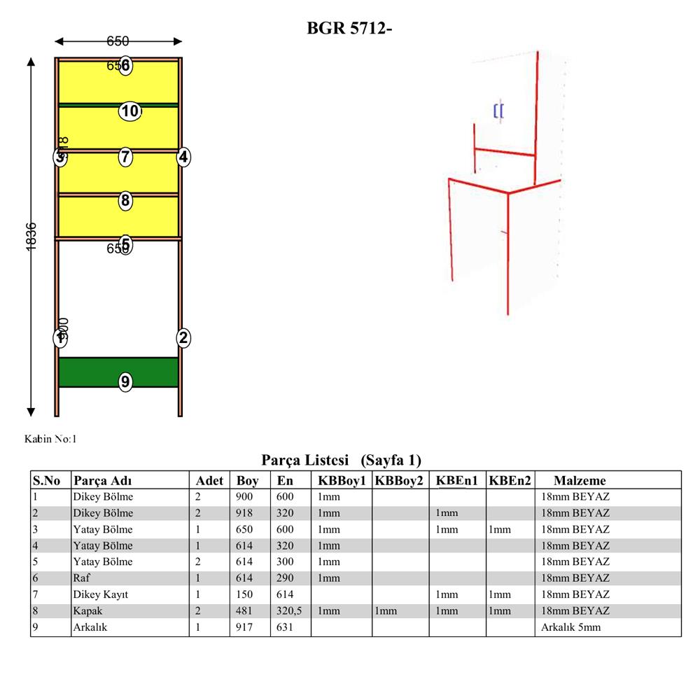 Malzeme: Melamin kaplı yonga levha