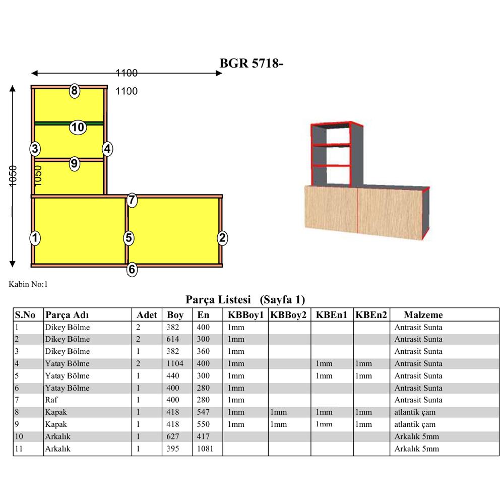 Malzeme: Yıldız Entegre 18 mm yonga levha