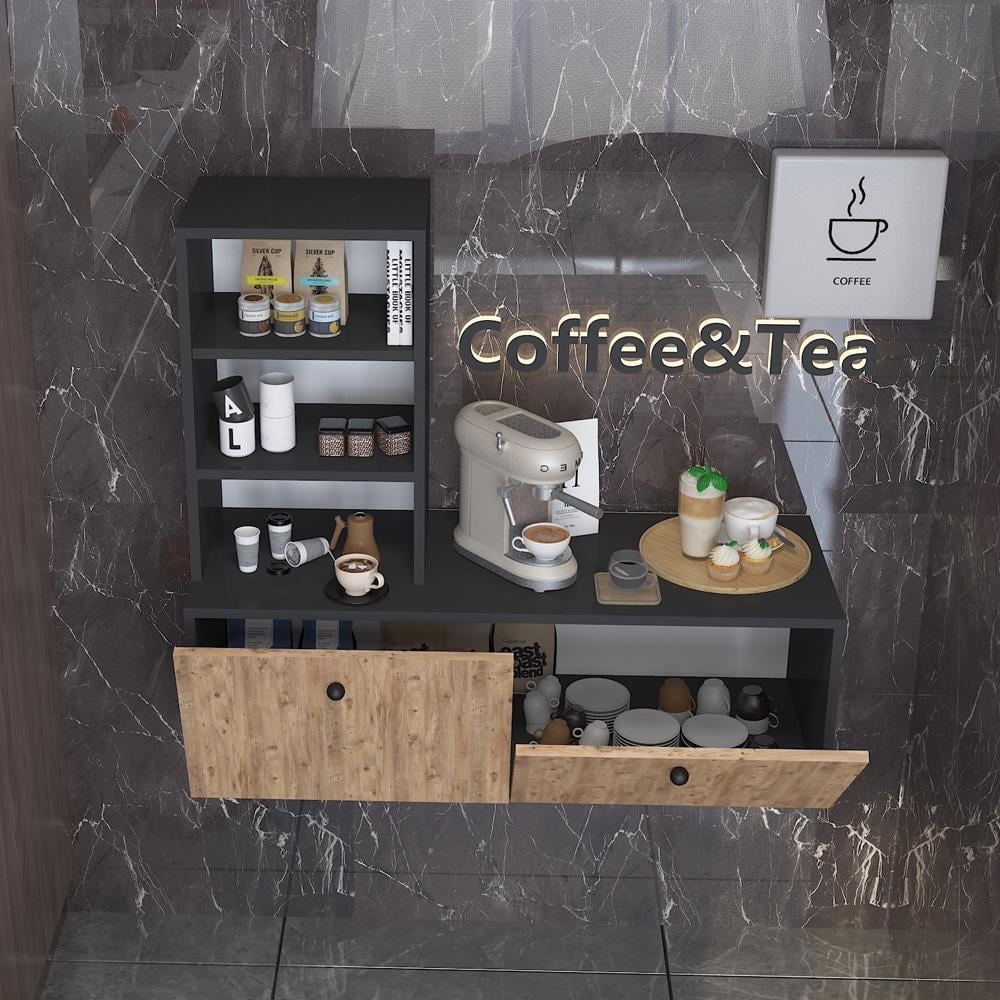 kahve köşesi olarak hem de günlük mutfak gereçlerinin düzenlenmesinde etkili bir yardımcı olur.