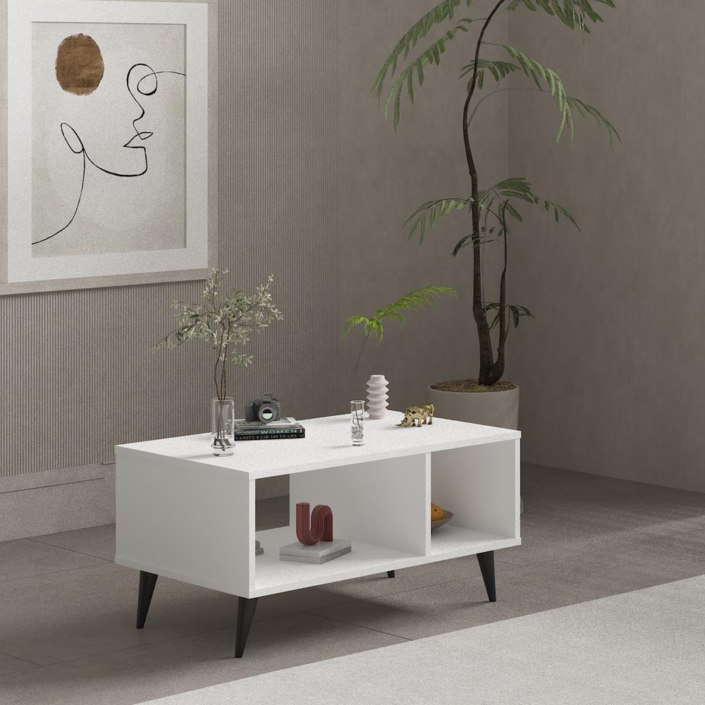 Beyaz renkli bu orta sehpa, sade çizgileri ve kompakt yapısıyla modern yaşam alanlarına estetik bir dokunuş katıyor.