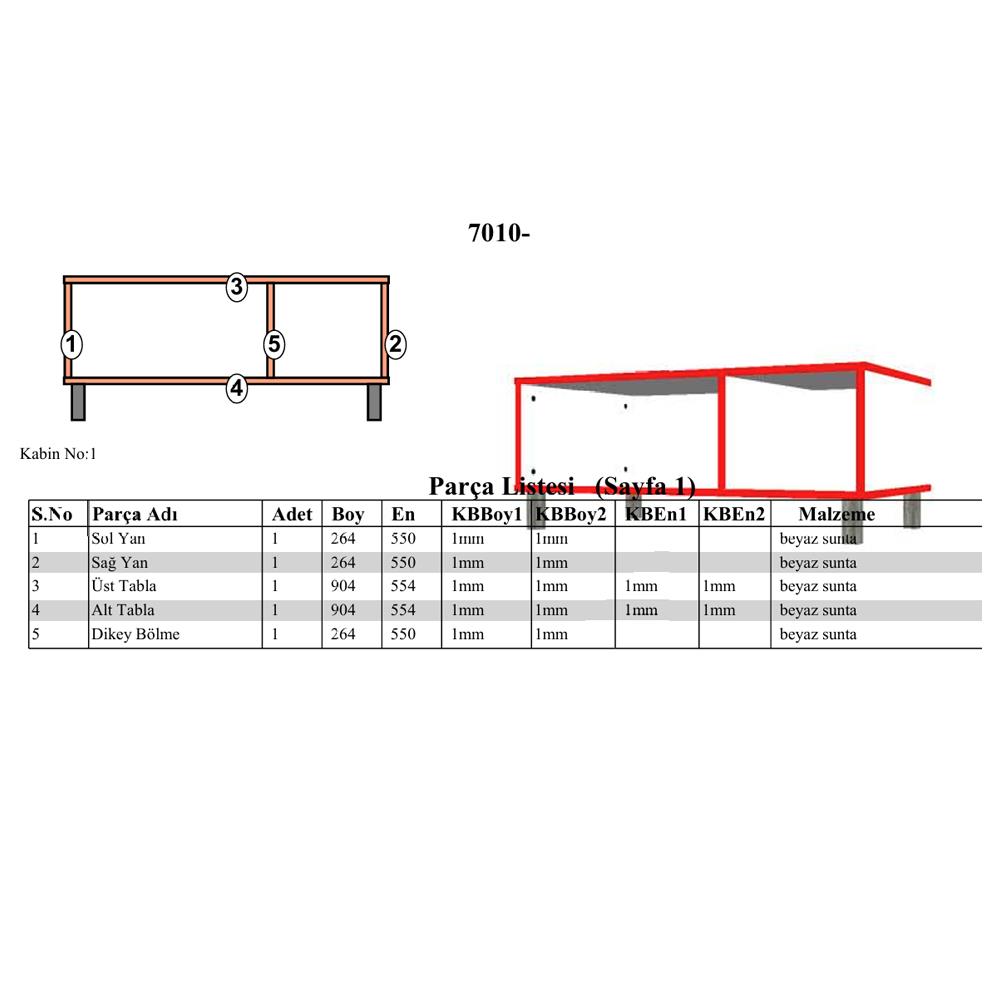 Malzeme: Tamamı beyaz melamin kaplı yonga levhadan üretilmiştir. Kolay temizlenebilir, dayanıklı yüzey yapısına sahiptir