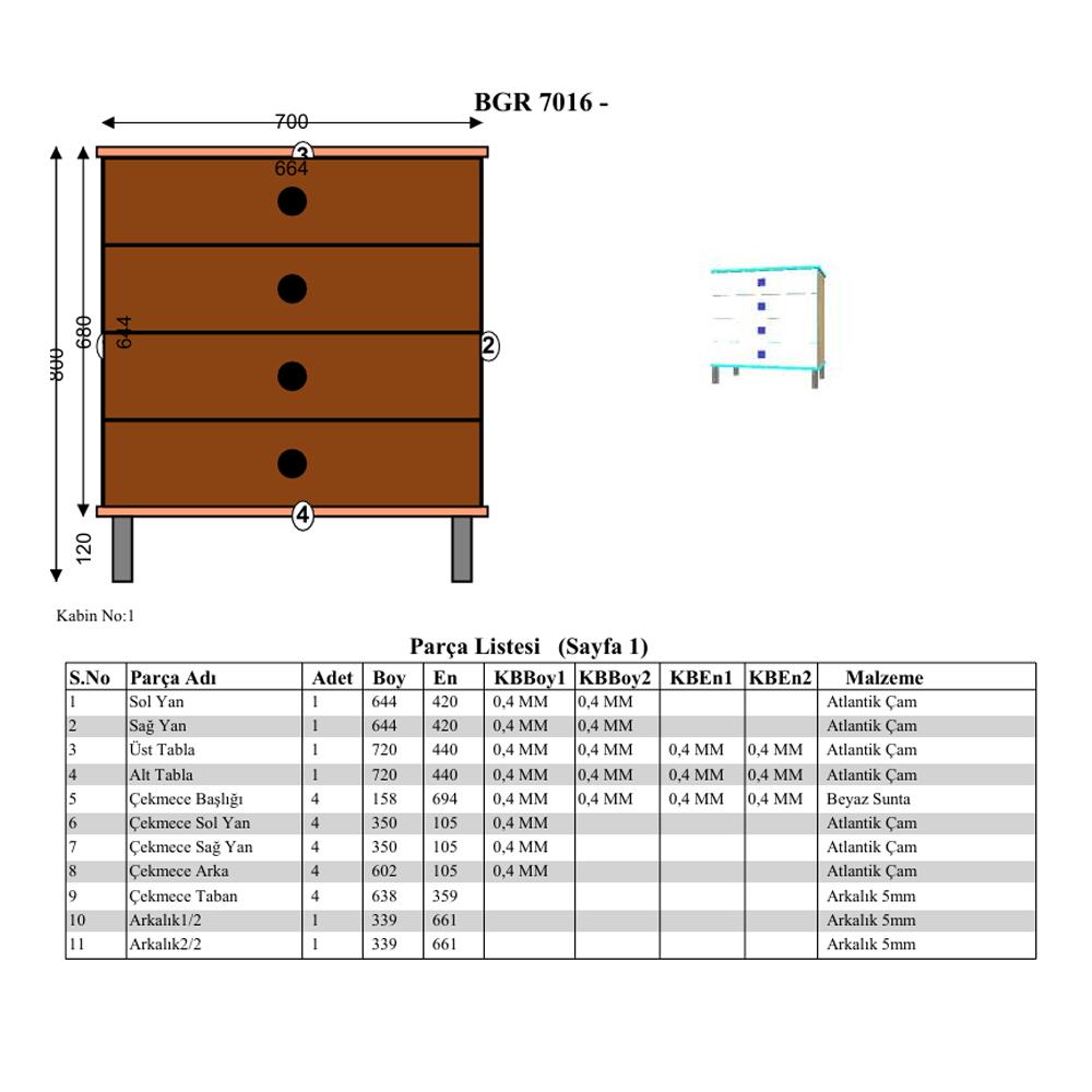 Geniş Depolama Alanı: 4 geniş çekmece, eşyalarınızı düzenli ve kolay erişilebilir bir şekilde saklamanızı sağlar.