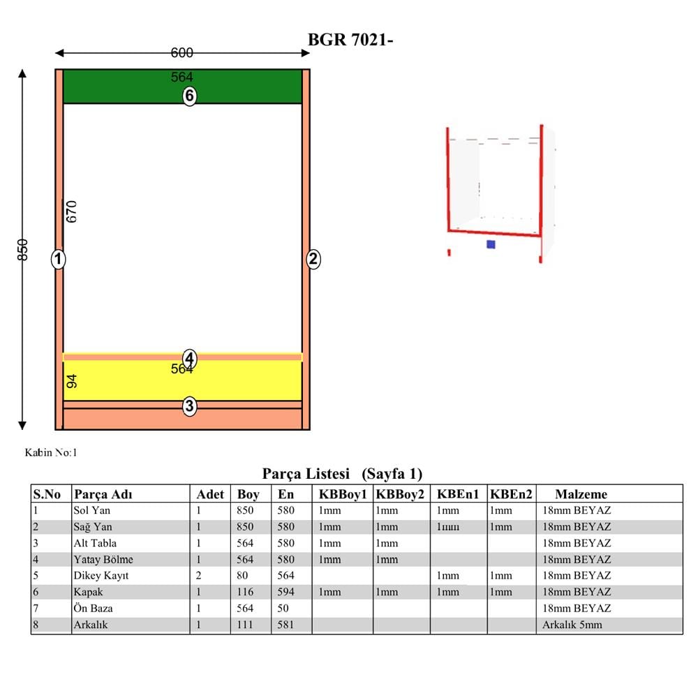BGR 7021 ankastre fırın dolabı, modern mutfaklar için tasarlanmış şık bir depolama çözümüdür. Beyaz melamin kaplı yonga levha kullanılarak üretilen bu dolap, mutfaklarda hem