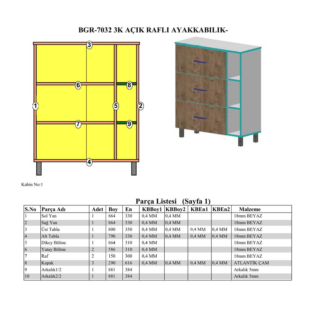 BGR 7032 modeli, ayakkabılarınızı düzenli ve estetik bir şekilde saklamak için tasarlanmış, çok amaçlı bir depolama ünitesidir. Gövdesi beyaz melamin kaplı yonga levhadan,