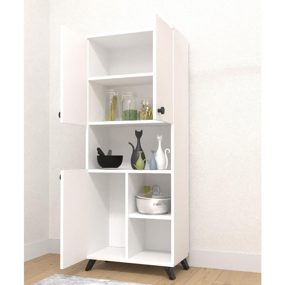 Üç kapaklı tasarımı, mutfak gereçlerinin gizli ve düzenli şekilde saklanmasını sağlarken; açık yan raflar sık kullanılan ürünler için kolay erişim sunar. Yüksek yapısı sayesinde dar
