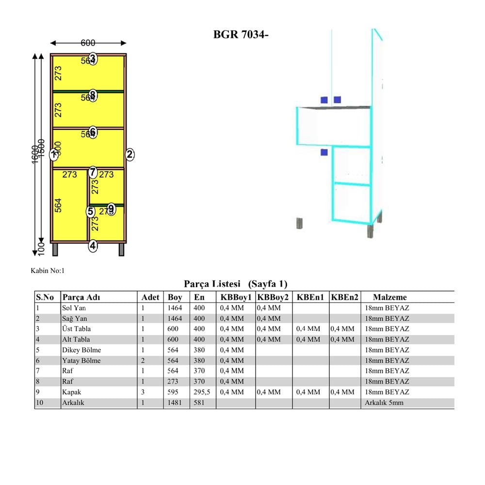 Bgr 7034 Çok Amaçlı 3 Kapaklı Mutfak Dolabı