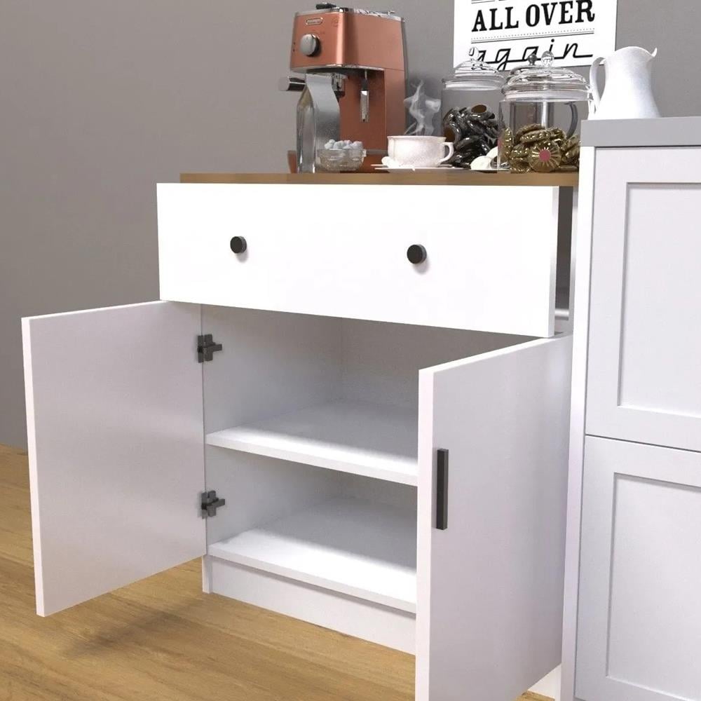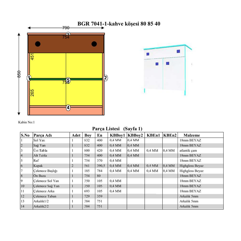 80 cm genişliğe, 85 cm yüksekliğe ve 42 cm derinliğe sahip olan bu kahve köşesi, kahve makinenizden fincan takımınıza, kahve kavanozlarından çeşitli aksesuarlarınıza kadar