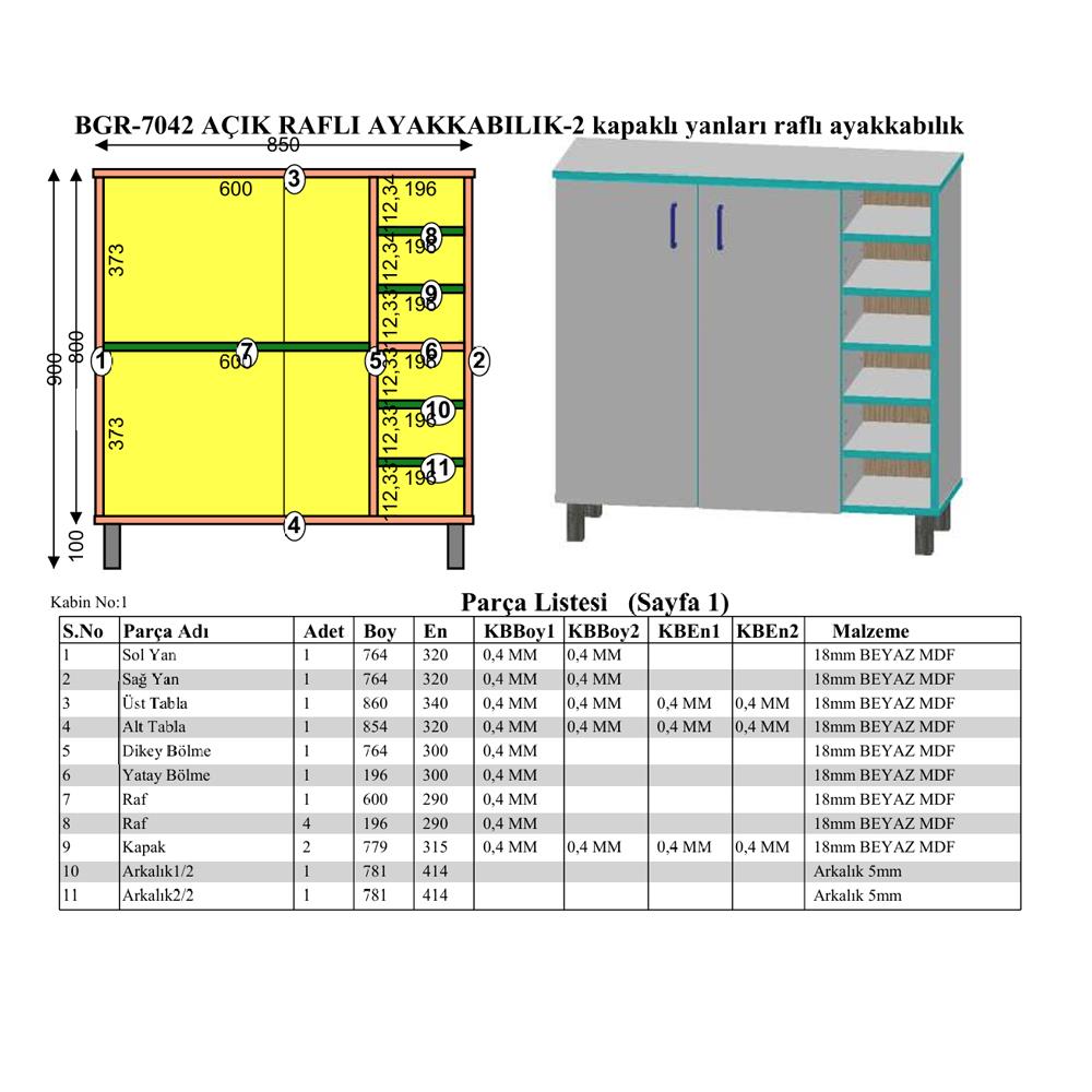 BGR 7042 modeli, giriş alanlarında düzeni sağlamak ve estetik bir görünüm kazandırmak için tasarlanmış çok amaçlı, iki kapaklı bir ayakkabılıktır. Yan kısımlarında yer alan raflar