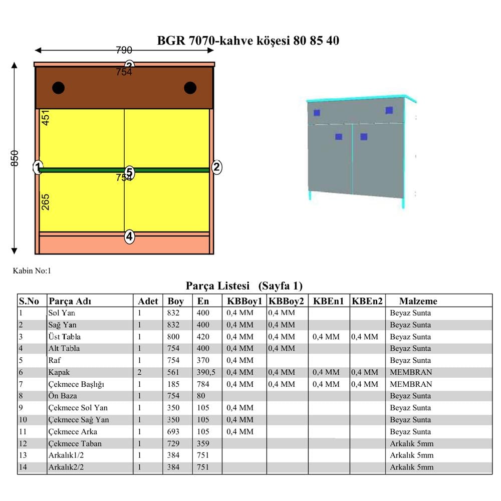 Ürün Adı: BGR 7070 Modern Kahve Köşesi Mutfak Dolabı