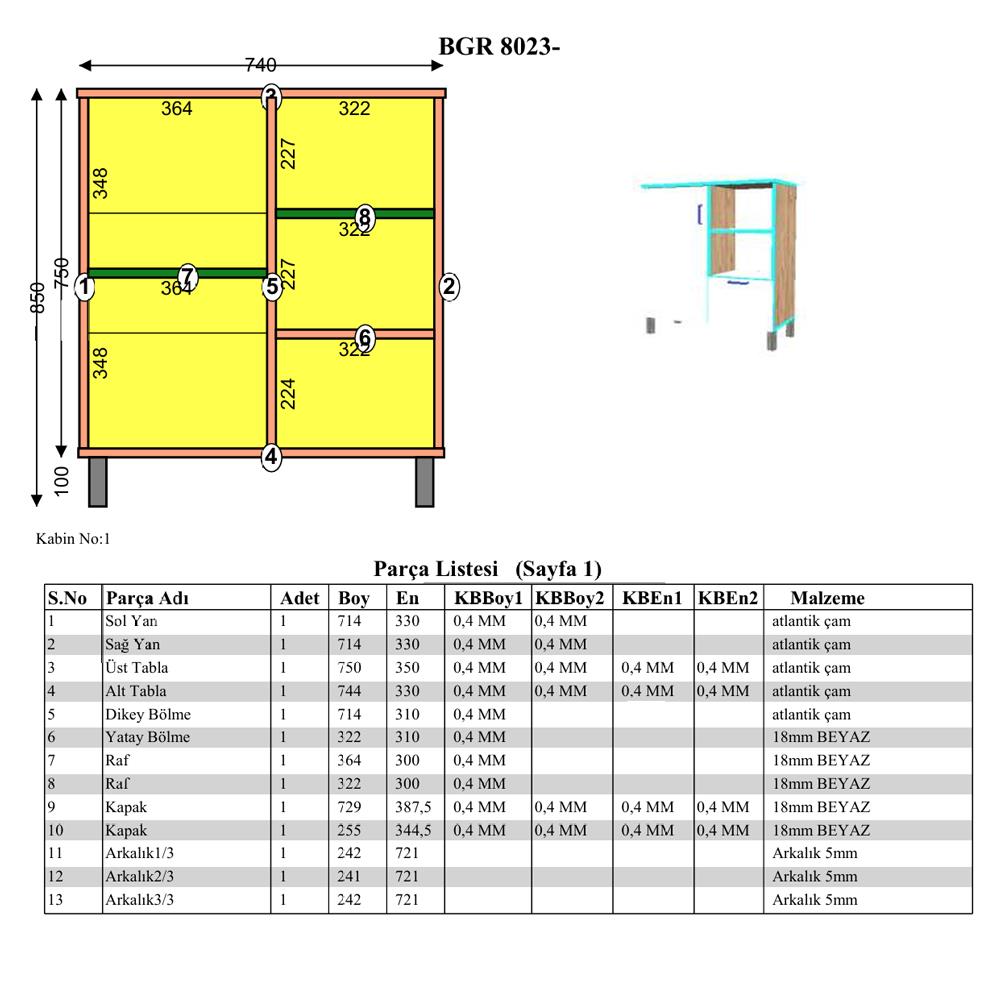 Bgr 8023 Lüks Raflı Düşer Kapak Çok Amaçlı Mutfak Dolabı