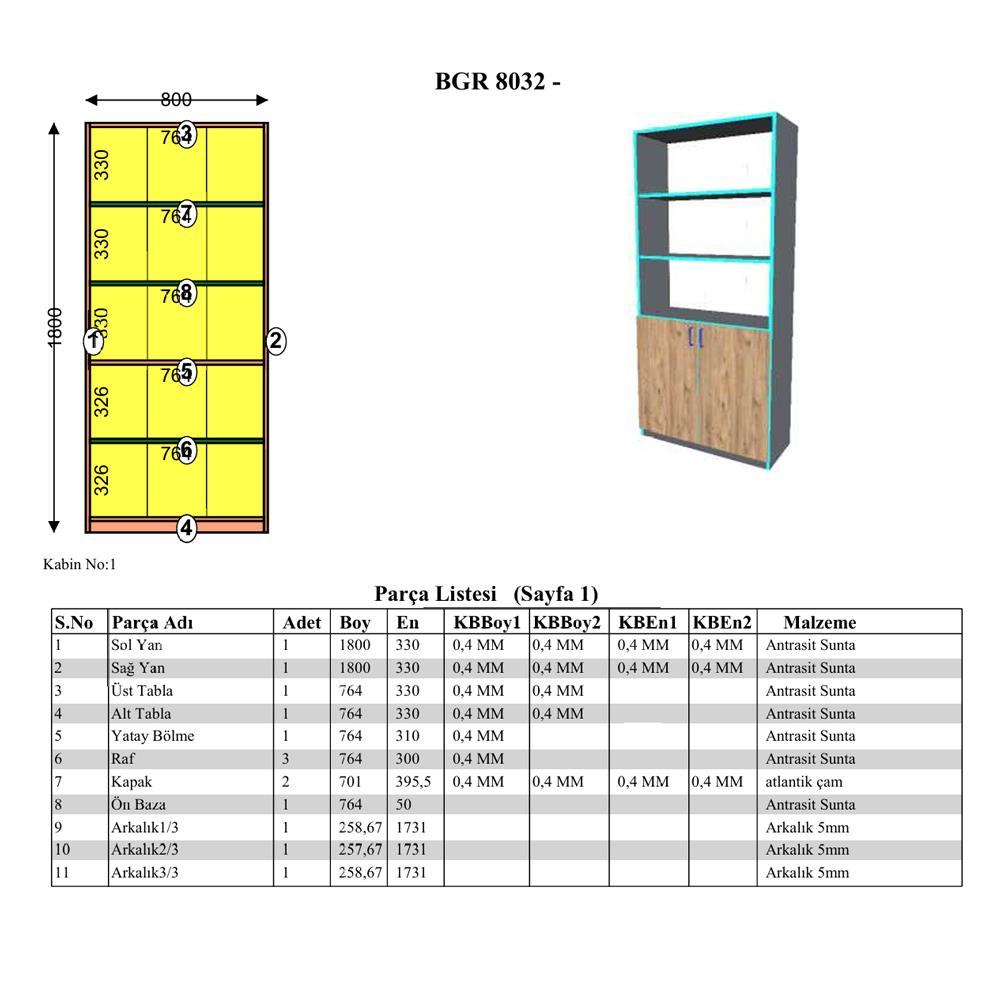 Bgr 8032 Antrasit Gövde 2 Kapaklı Kilitli Ofis Klasör Dosya Ve Evrak Dolabı