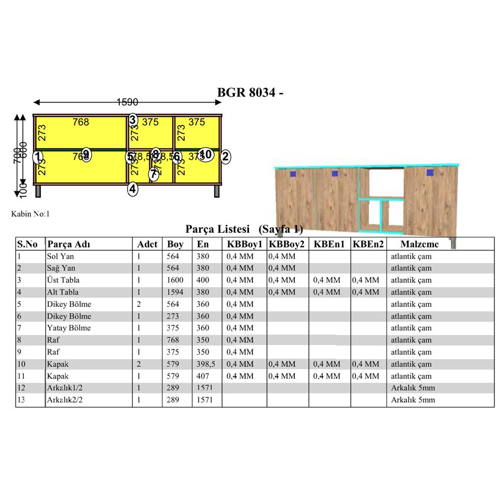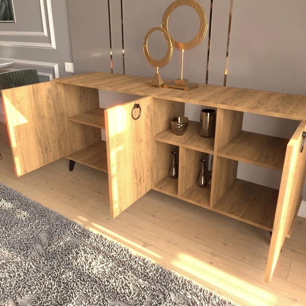 BGR 8034 3 kapaklı konsol, estetik ve fonksiyonaliteyi bir araya getiren modern bir depolama çözümüdür. Gövdesi ve kapakları atlantik çam melamin kaplı yonga levhadan