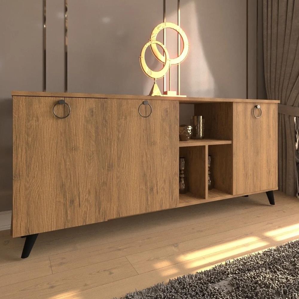 üretilmiştir, bu da ona hem doğal bir ahşap görünümü hem de uzun ömürlü kullanım sağlar. Bu şık konsol, salon, oturma odası veya antre gibi farklı alanlarda kullanılabilir.