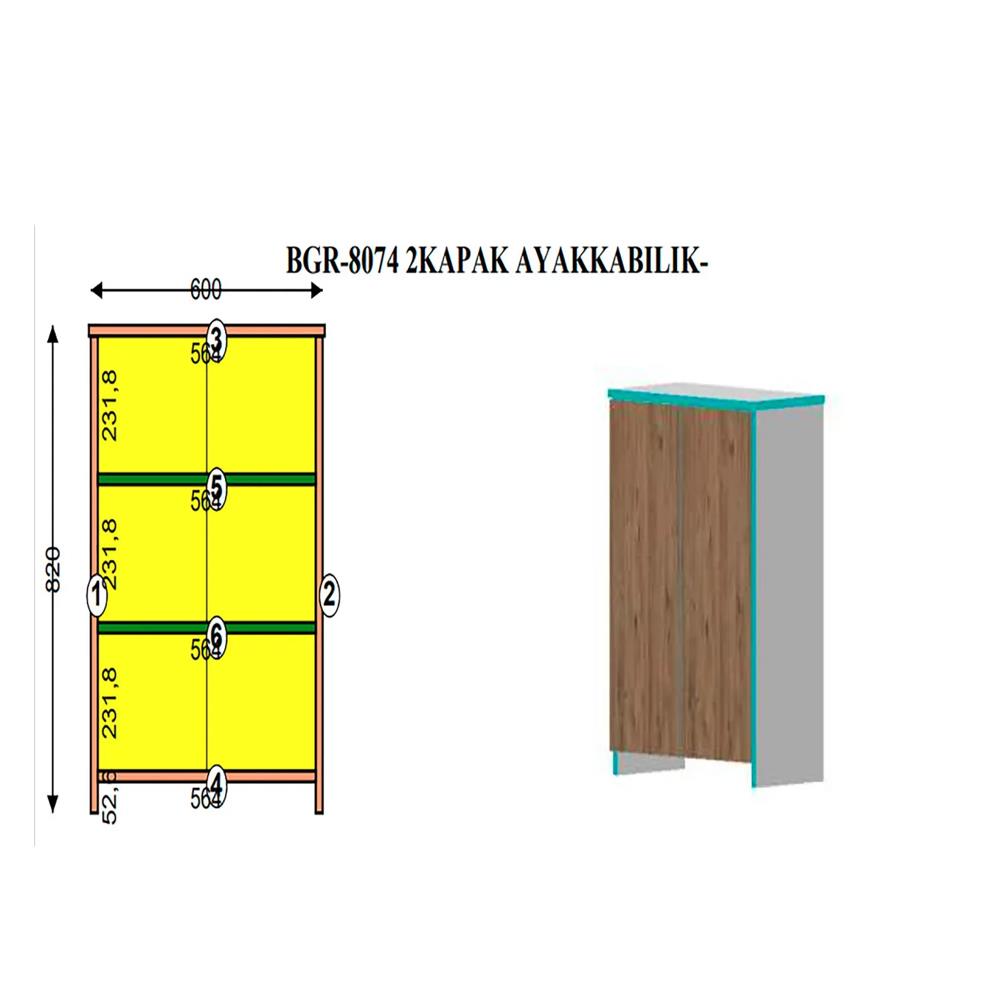 İki raflı iç yapısı, günlük kullanılan ayakkabıları rahatça yerleştirmenize olanak tanırken, kapaklı yapısı sayesinde dağınık görünümü ortadan kaldırır ve temiz bir ortam yaratır.