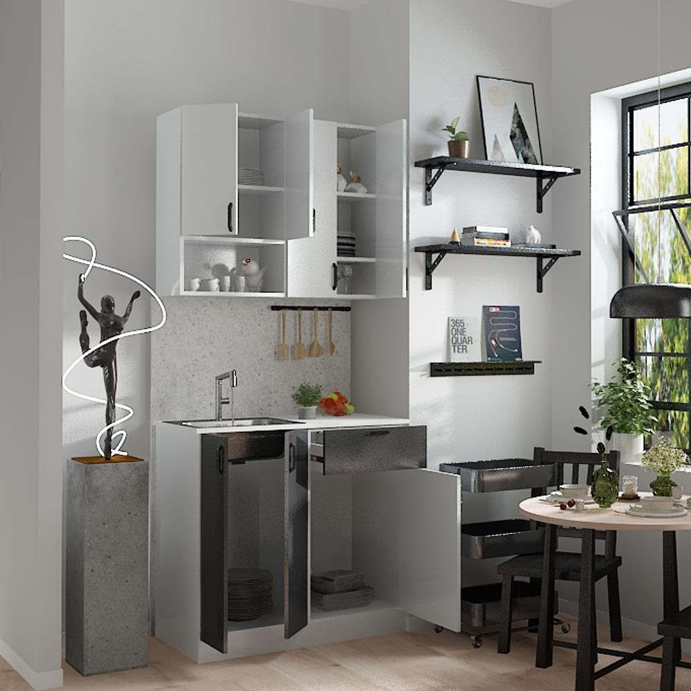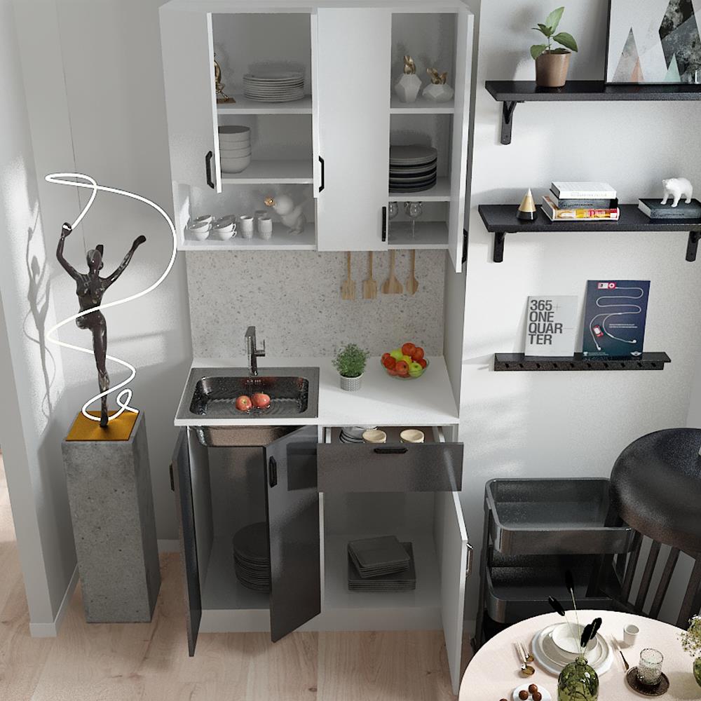 Modern mutfaklar için tasarlanmış bu dolap, beyaz gövdesi ve antrasit detaylarıyla sade şıklığı bir arada sunar. Hem estetik hem de işlevsel yapısı sayesinde mutfağınızı