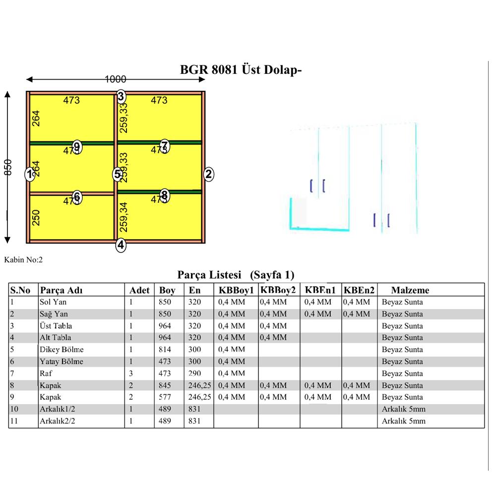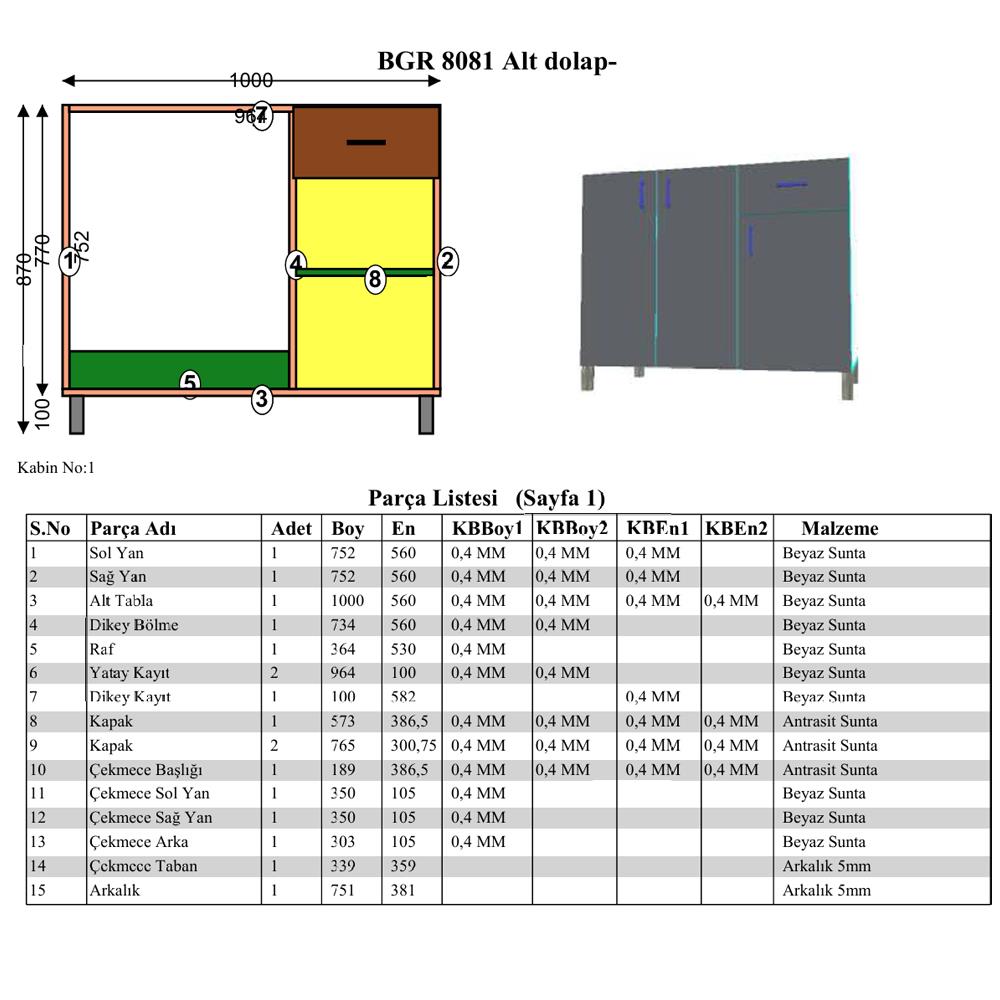 Bgr 8081 Beyaz Gövde Antrasit Detaylı Mutfak Dolabı Alt-Üst Modül