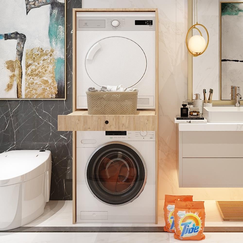 Banyonuzdaki çamaşır ve kurutma makinelerini yerleştirebileceğiniz geniş bir alan sunan bu dolap, modern ve estetik bir görünüm kazandırır. Ayrıca, çamaşır makinelerinizin