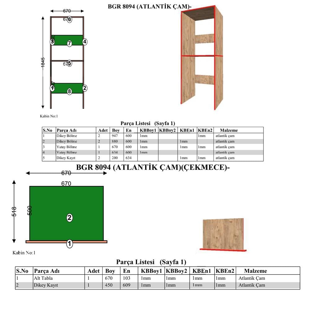 Malzeme: Atlantik çam melamin kaplı yonga levha