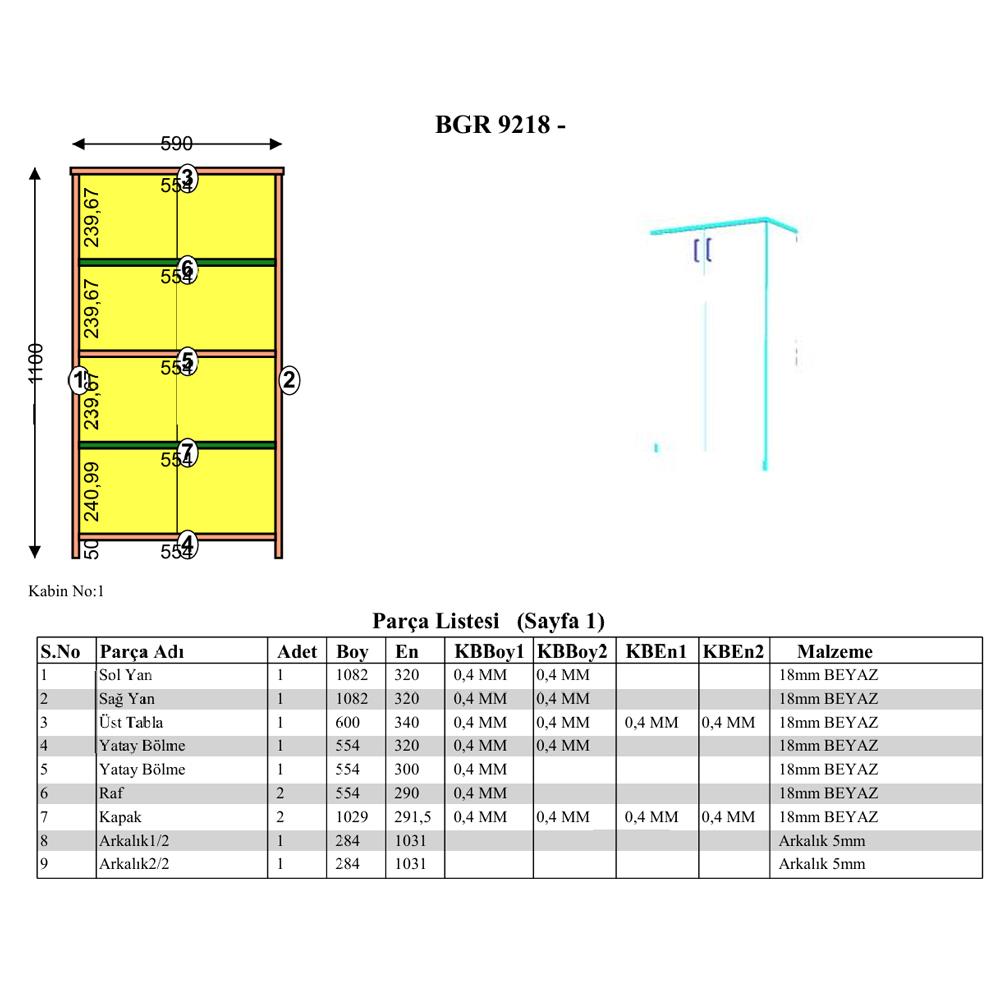 BGR 9218 modeli, farklı yaşam alanlarında kullanıma uygun çok yönlü bir dolap alternatifi sunar. Beyaz melamin kaplı yonga levha malzemesiyle üretilen bu dolap, sade ve