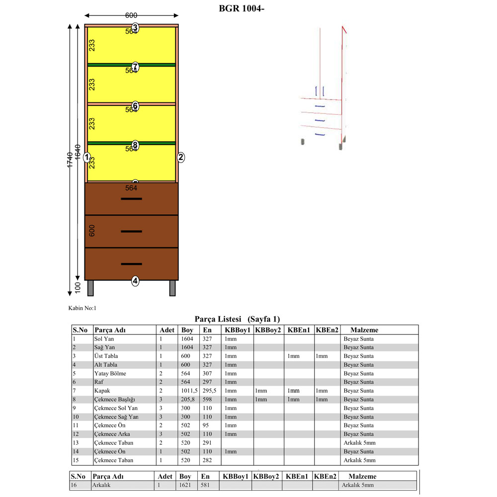 BGR dolap 1004 modeli, 174 cm yükseklik, 60 cm genişlik ve 32,7 cm derinlik ölçülerine sahiptir. Malzeme olarak beyaz melamin kaplı yonga levha kullanılmıştır. Kapaklı raf sistemine sahip olan bu model, dikey tasarımı ile dar alanlarda bile yüksek depolama kapasitesi sunar. Hafif ve dayanıklı yapısı sayesinde kolay taşınabilir, kurulumu pratiktir. Hem ev hem de ofis ortamları için ideal bir saklama ve düzenleme çözümüdür.